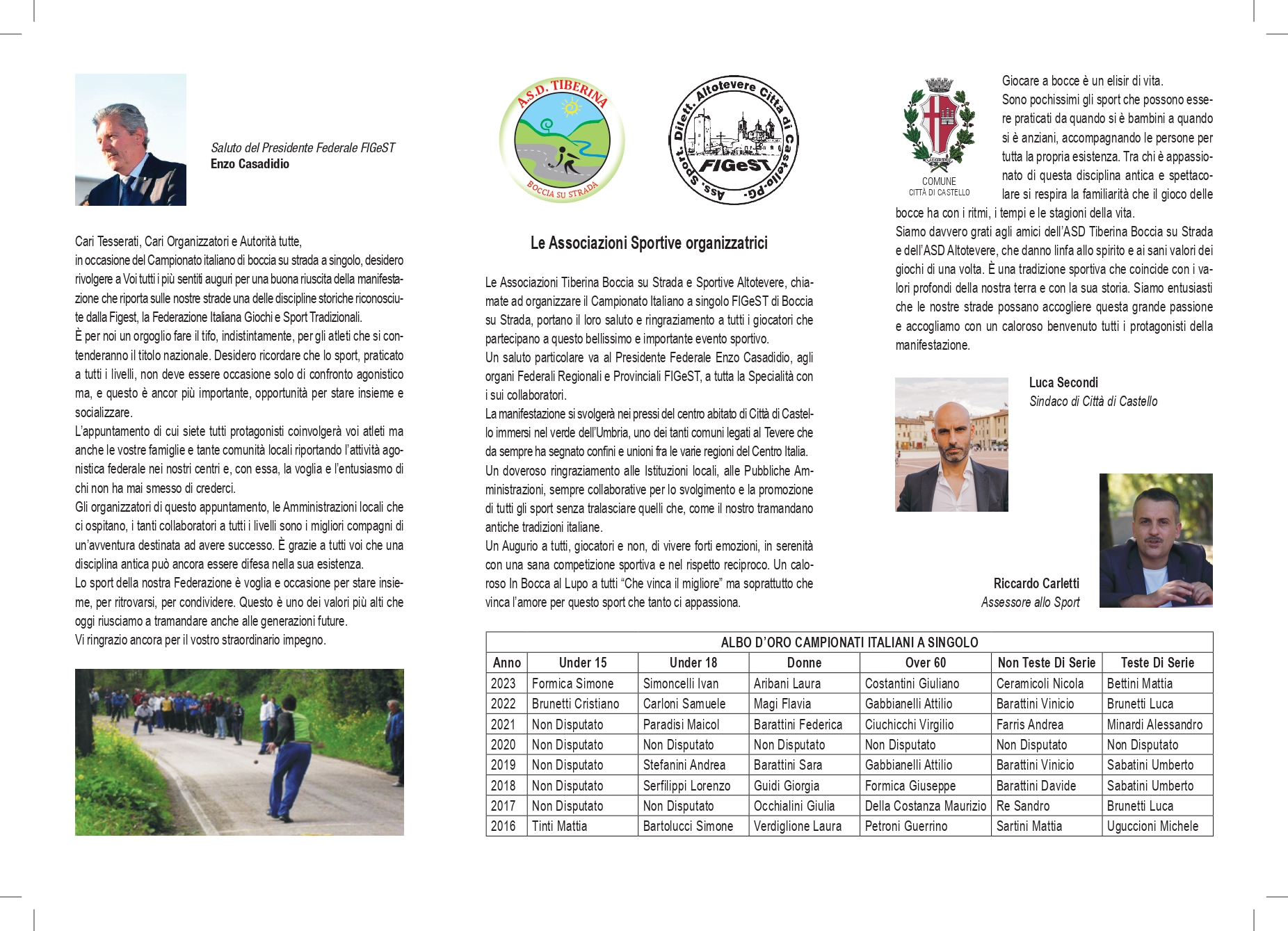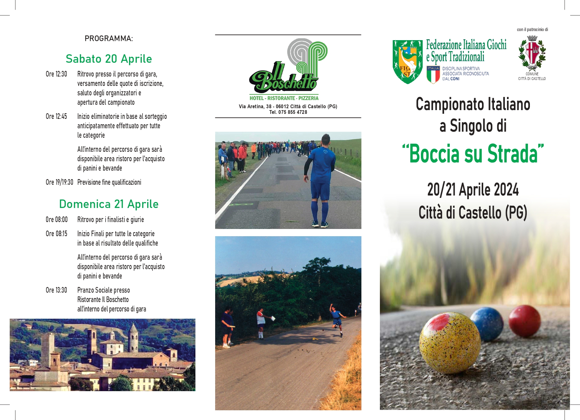 Sabato e domenica prossimi, 20 e 21 aprile, Città di Castello ospita il Campionato italiano a singolo di Boccia su strada, disciplina sportiva riconosciuta dalla Figest, Federazione Italiana Giochi e Sport Tradizionali.