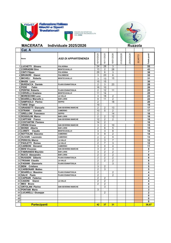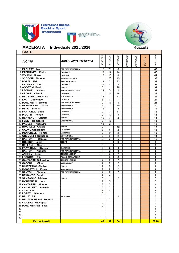 Classifica Individuale 2025-2026 Macerata