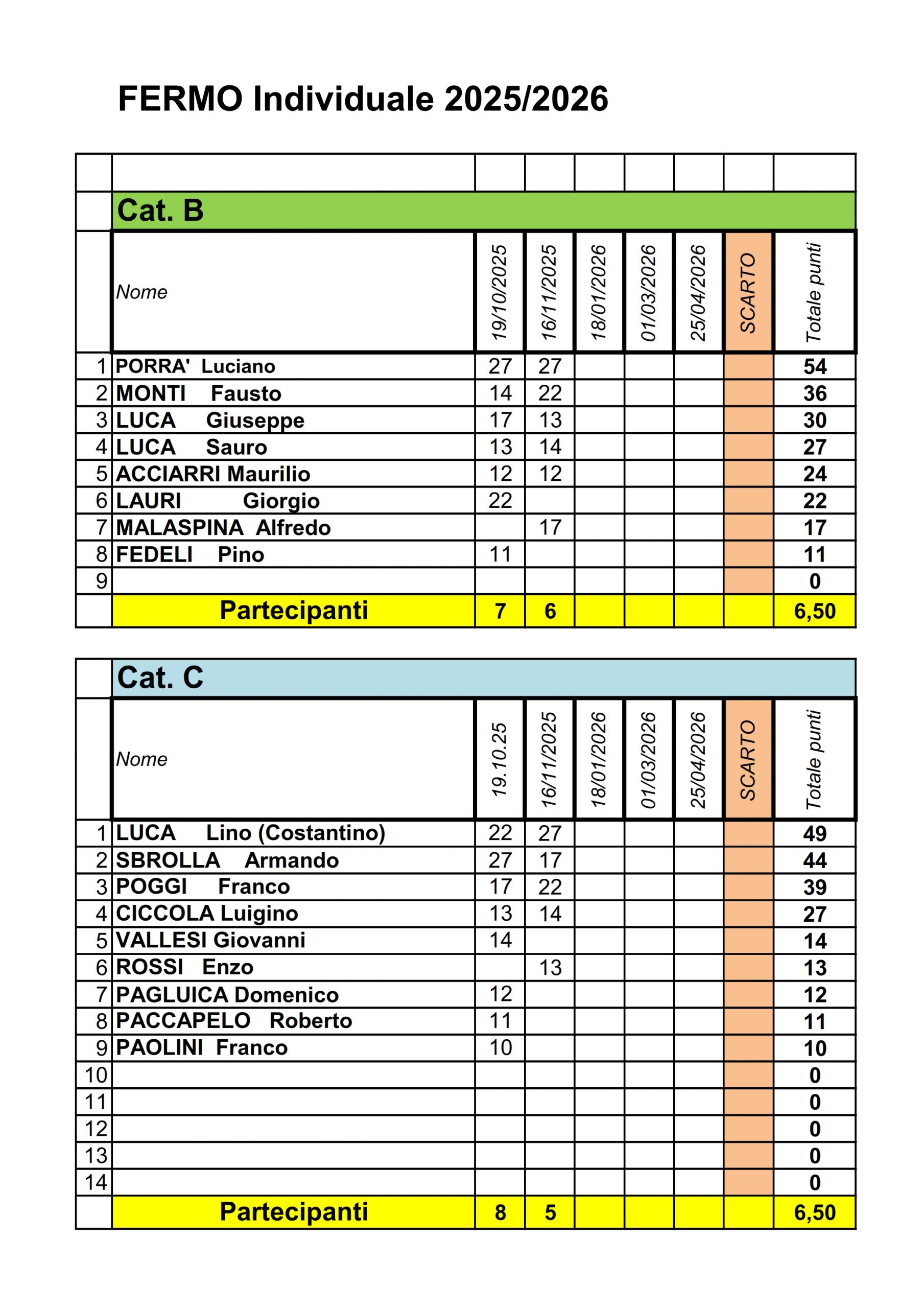 Classifica Individuale Ruzzola 2025-2026 Fermo