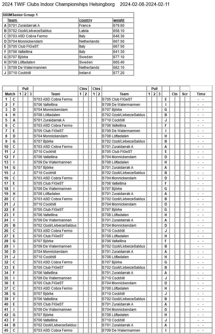 In gara oggi nella categoria 680 Kg Maschile i club: Club FIGeST, Cobra Fermo e TAF Valtellina.